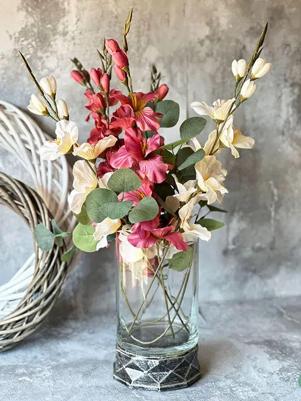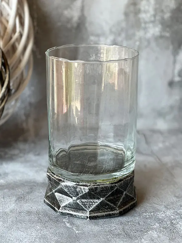 Piękny wazon z masywnego szkła i dekoracyjnej podstawy z żywicy. Idealny do wyeksponowania każdej kompozycji kwiatowej.