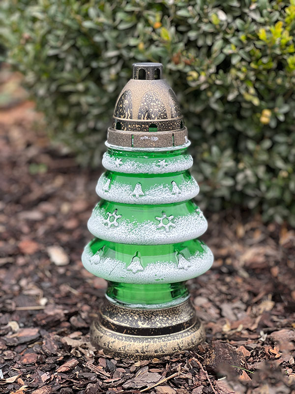 Znicz CHT-2 to efektowny lampion w kształcie zielonej choinki na wkład wymienny. Charakteryzuje się zdobionym, ośnieżonym szkłem dającym wyjątkowy efekt.