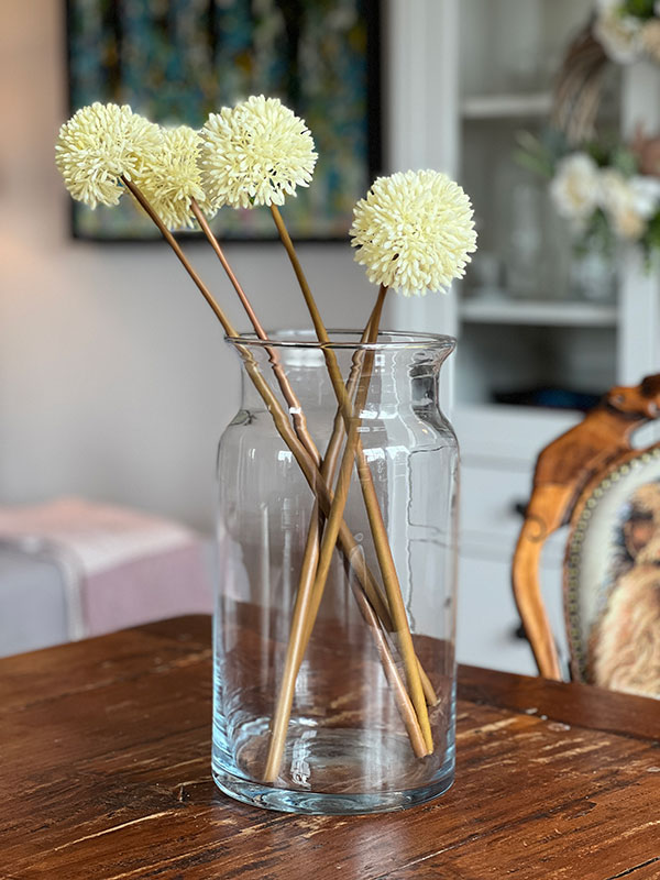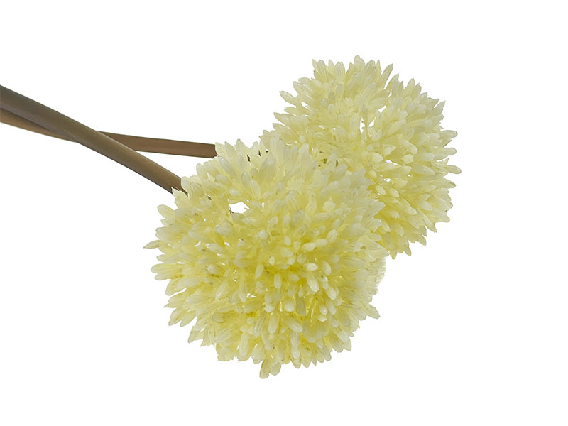 Długa gałązka czosnku ozdobnego będzie wspaniałą dekoracją stołu, komody i każdego innego miejsca. Wpasuje się do każdego pomieszczenia w każdym stylu designu. Ozdoba urzeka białymi, kulistymi kwiatostanami, które zdają się oprószone delikatnymi kuleczkami.