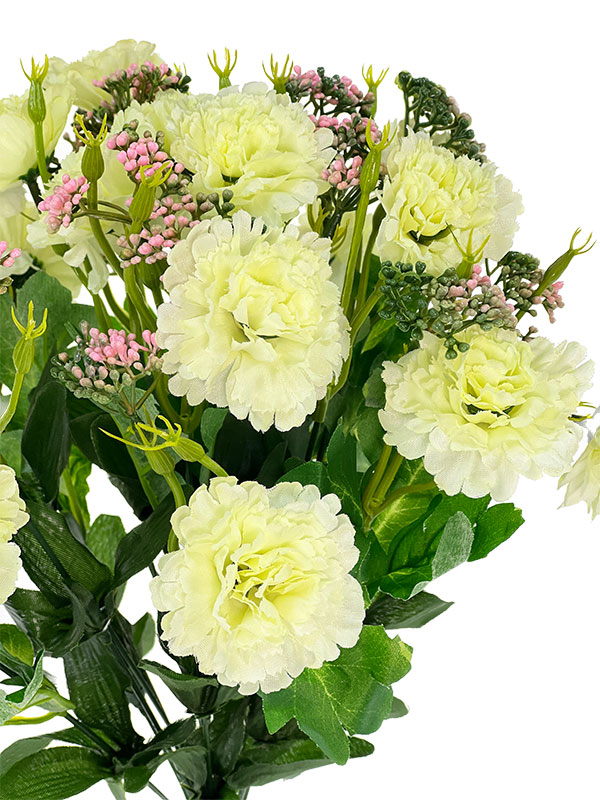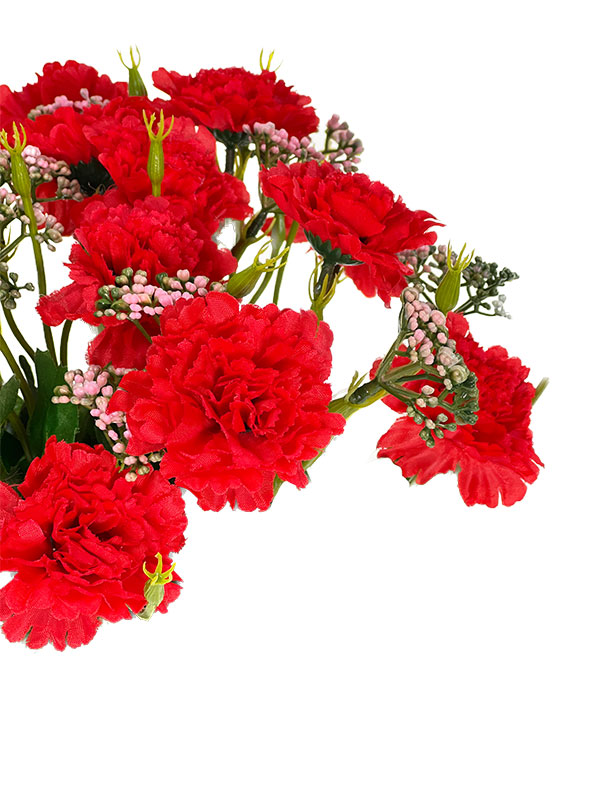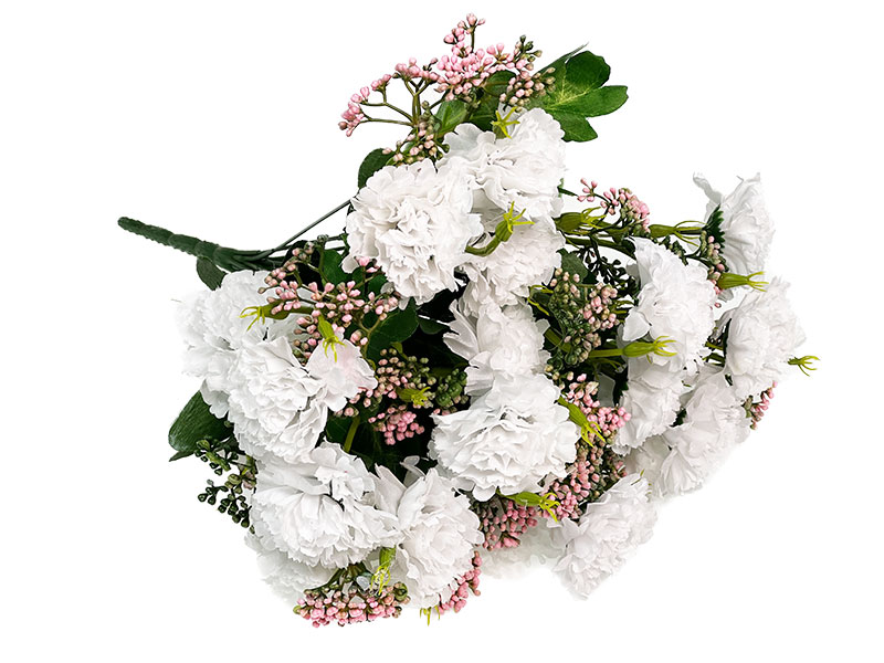 Na rynku istnieje wiele rodzajów sztucznych goździków w różnych kolorach, idealnych do tworzenia pięknych bukietów. Sztuczne goździki w bukiecie BXT20308-18 są dostępne w CZTERECH kolorach, W odcieniach różu, , bieli, czerwieni i limonki . Możesz wybrać jeden kolor, aby stworzyć spójny bukiet lub połączyć kilka odcieni, aby nadać bukietowi bardziej eklektycznego charakteru. Dodatkowo, połączenie sztucznych goździków z innymi kwiatami, takimi jak np. róże stworzy wyjątkową kompozycję kwiatową.