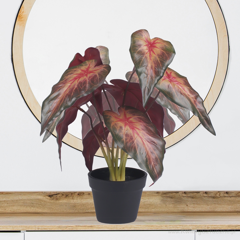 Sztuczny kwiat Kaladium świetnie imituje żywą roślinę, ma efektowny i realistyczny wygląd.