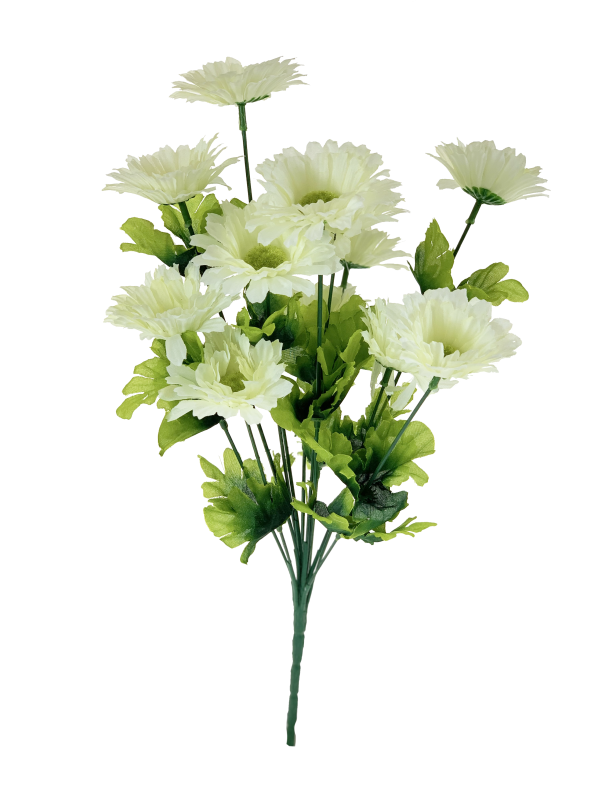 Bukiet składający się z 12 kwiatów z liśćmi. Wysokość bukietu 40 cm. Kolor biały. Dostępny również w innej kolorystyce.