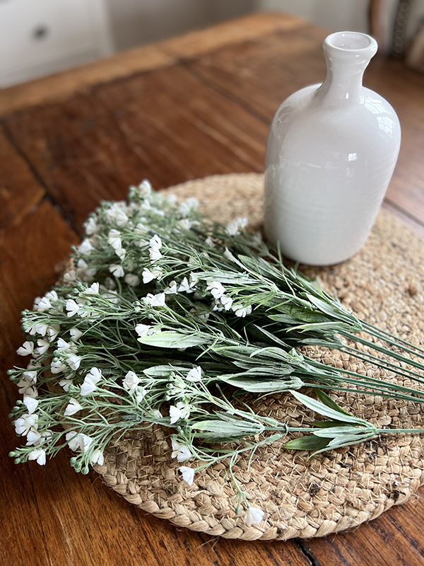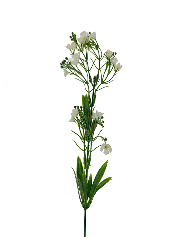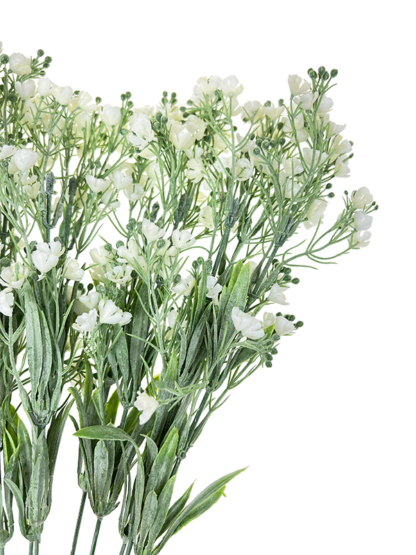 Dodatek zielony z białymi, drobnymi kwiatami. Gałązki z efektem omszałych liści. Idealny dodatek do wszelakich kompozycji roślinnych lub jako gotowa ozdoba do wazonu. Proponowana ilość do wazonu aby ładnie się prezentowało – ok. 10 sztuk.