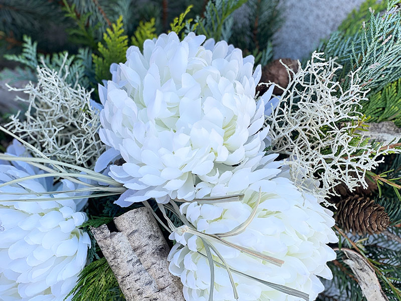 Piękna , majestatyczna główka wyrobowa chryzantemy wielkokwiatowej idealna do wszelakich kompozycji funeralnych.