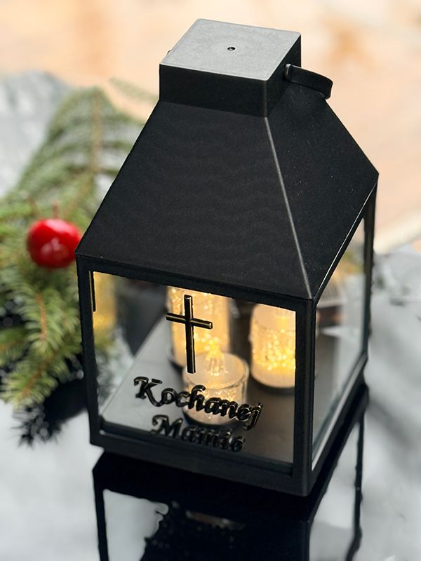 Wyjątkowa latarenka Led idealna na pomnik. Ponadczasowy kształt typowy dla tego typu lampionów oraz sentencja sprawi ,że będzie to produkt uniwersalny na cały rok. Świece Led są w trzech rożnych rozmiarach z imitacją wosku oraz odrobiną brokatu , który potęguje rozświetlanie wnętrza lampionu.