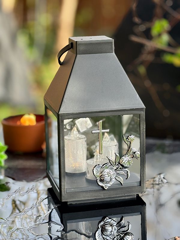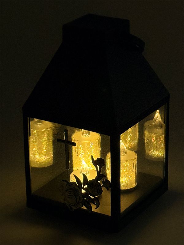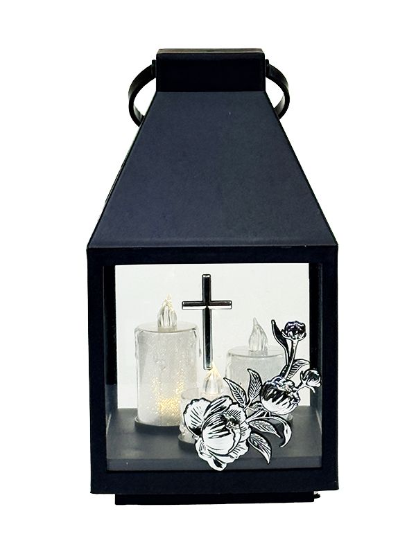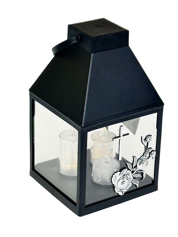 Wyjątkowa latarenka Led idealna na pomnik. Ponadczasowy kształt typowy dla tego typu lampionów oraz sentencja sprawi ,że będzie to produkt uniwersalny na cały rok. Świece Led są w trzech rożnych rozmiarach z imitacją wosku oraz odrobiną brokatu , który potęguje  rozświetlanie wnętrza lampionu.