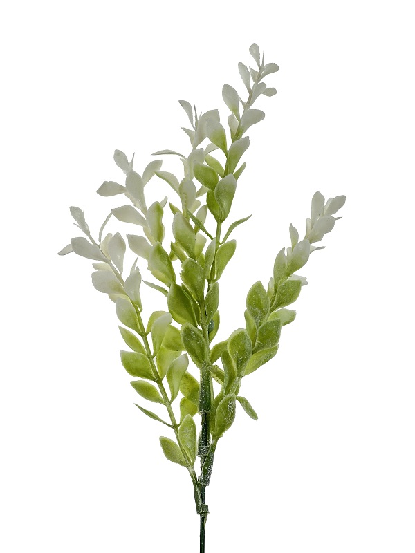 Zielony dodatek przypominający bukszpan idealnie nadaje się do wszelkiego rodzaju kompozycji z udziałem kwiatów. Będzie wspaniałym dopełnieniem każdego wianka, stroika lub bukietu kwiatowego. W pęczku znajduje się 12 pojedynczych gałązek. Pokryte białym pyłem. Kolor to piękna wiosenna zieleń z białymi końcówkami.