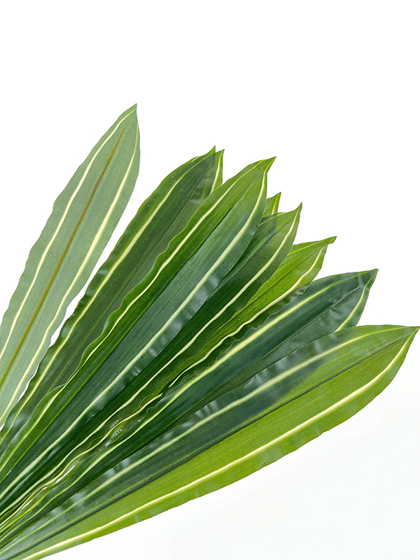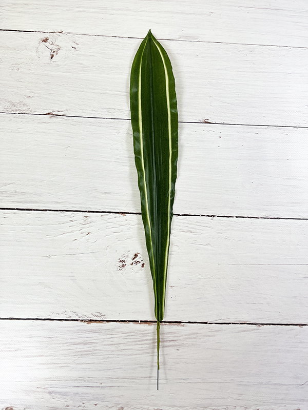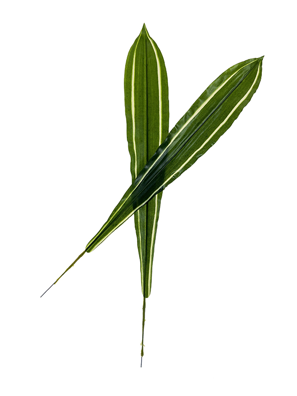 Zielony liść draceny na piku, doskonały do wszelakich kompozycji kwiatowych, bukietów wiązanek. Charakteryzuje się świetnym odwzorowaniem prawdziwej rośliny. Doskonała jakość i faktura kwiatów sprawiają, że wygląda bardzo naturalnie . Kolor  zielony ciemny z jaśniejszymi pasami na środku. Plastyczność liścia daje dużą dowolność w aranżacji.