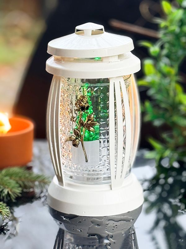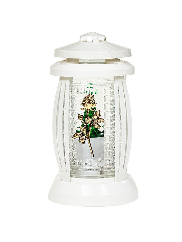 Znicz szklany Prima3 Biała (złota róża) + Choinka Led MD1CH