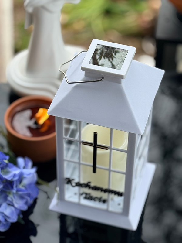 Ten lampion solarny dedykowany najbliższej osobie rozświetla pomnik subtelnym blaskiem, stając się symbolem miłości, pamięci i nieprzemijającej obecności bliskich. Wystarczy jedno wciśnięcie przycisku, a resztą zajmuje się energia słoneczna. Panel na szczycie znicza ładuje akumulator nawet w pochmurne dni, dzięki czemu świeca z  diodą LED świeci nieustannie po zmierzchu przez cały rok. To elegancki i praktyczny sposób, by pamięć o bliskich nigdy nie gasła.