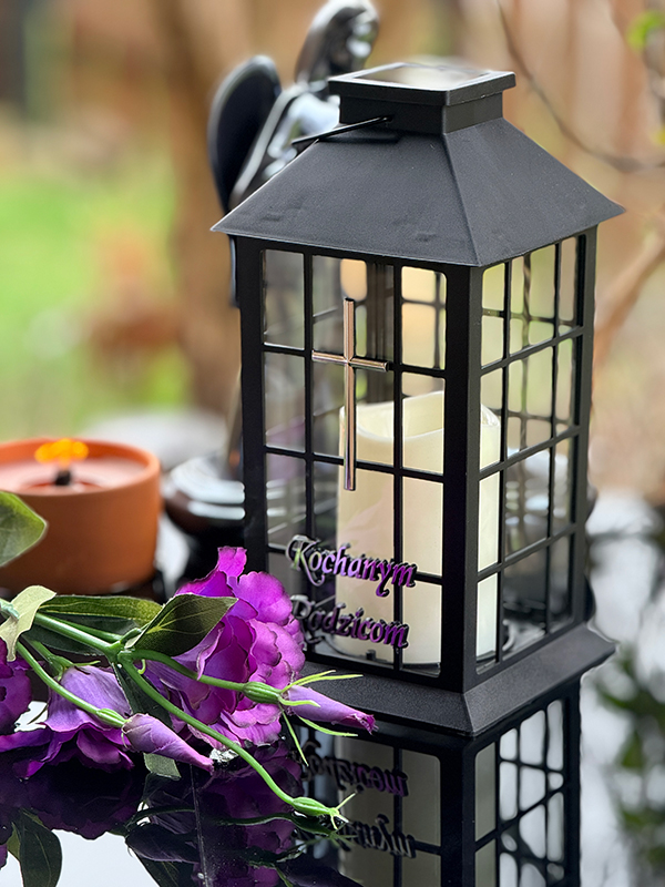 Ten lampion solarny dedykowany najbliższej osobie rozświetla pomnik subtelnym blaskiem, stając się symbolem miłości, pamięci i nieprzemijającej obecności bliskich. Wystarczy jedno wciśnięcie przycisku, a resztą zajmuje się energia słoneczna. Panel na szczycie znicza ładuje akumulator nawet w pochmurne dni, dzięki czemu świeca z diodą LED świeci nieustannie po zmierzchu przez cały rok. To elegancki i praktyczny sposób, by pamięć o bliskich nigdy nie gasła.