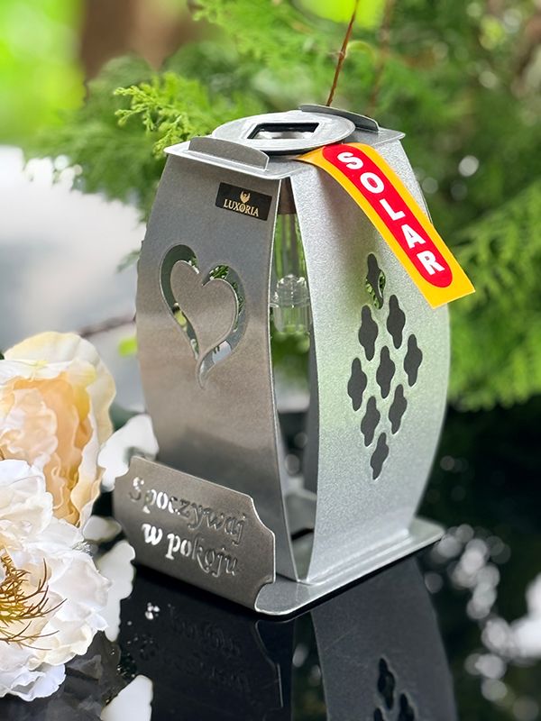 Kapliczka Solarna Metalowa LUXORIA1 – SREBRNA Serce ŚP. (19 cm)