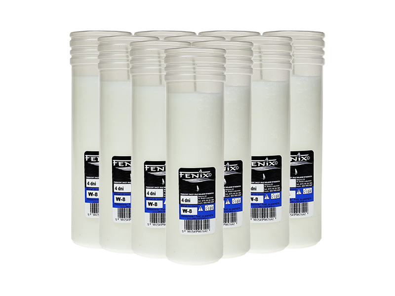 Wkład parafinowy prasowany o czasie palenia ~ 4 dni. Polecany do szklanych zniczy o średniej i dużej wielkości. Wysokość tuby 20 cm, długi knot ułatwiający odpalenie.