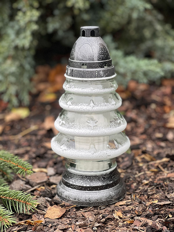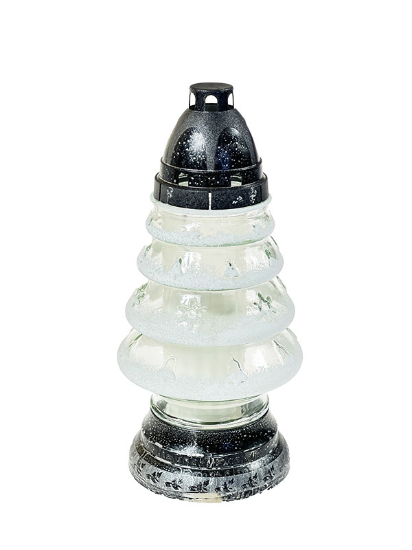 Znicz CHT-2 to efektowny lampion  w kształcie choinki na wkład wymienny. Charakteryzuje się zdobionym, ośnieżonym szkłem dającym wyjątkowy efekt.