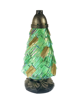 Bardzo duży znicz świąteczny na wkład wymienny. Tęczowe szkło, wzór gwiazdy betlejemskiej na szkle.
