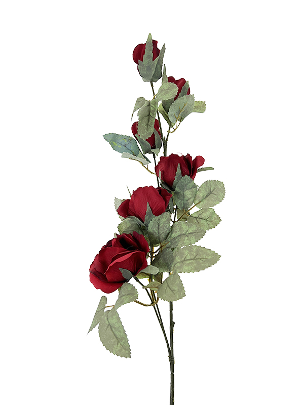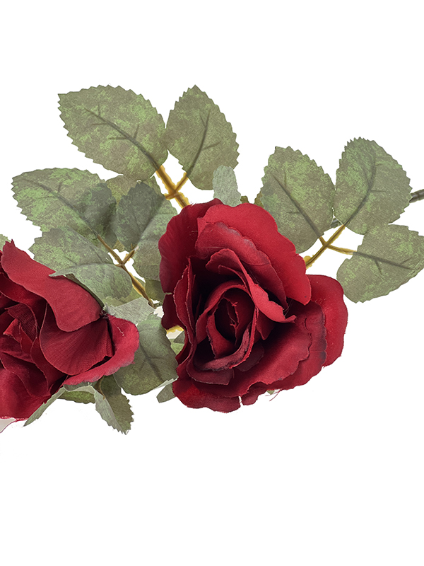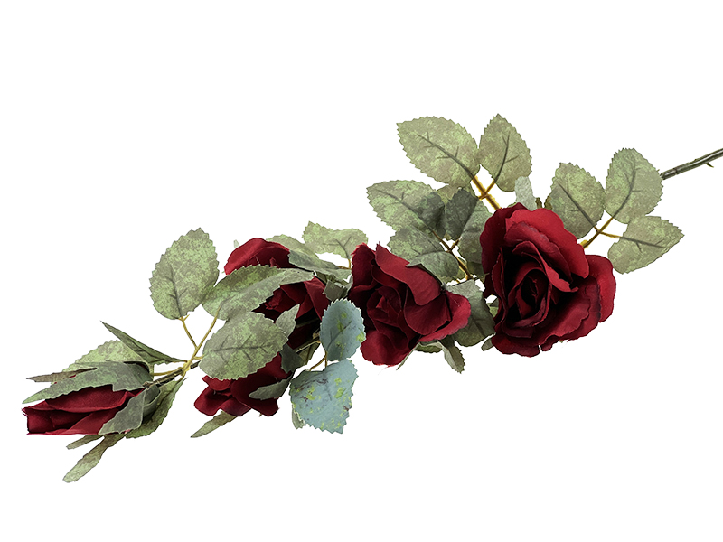 Piękna pojedyncza róża do złudzenia przypominająca naturalny kwiat. Cechą charakterystyczną są gałązki z kolcami i ciekawy odcień liści co jeszcze bardziej wzmaga wrażenie żywej rośliny. Do wykorzystania jako ozdoba w wazonie lub do dalszego tworzenia własnych kompozycji kwiatowych.