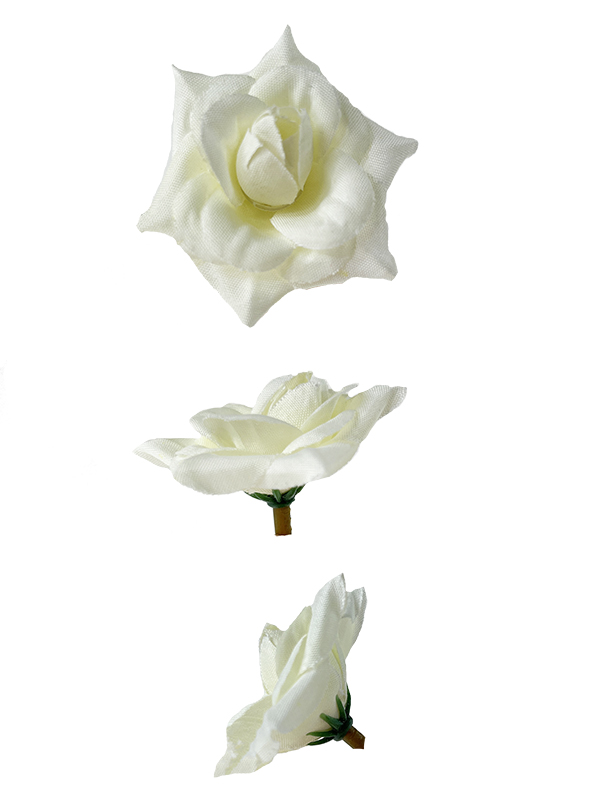 Urocza, mała różyczka wyrobowa o średnicy 5 cm. Wykorzystywana do tworzenia własnych wianków, stroików i innych kompozycji kwiatowych np. komunijnych .Posiada otwór do zamontowania na druciku florystycznym.