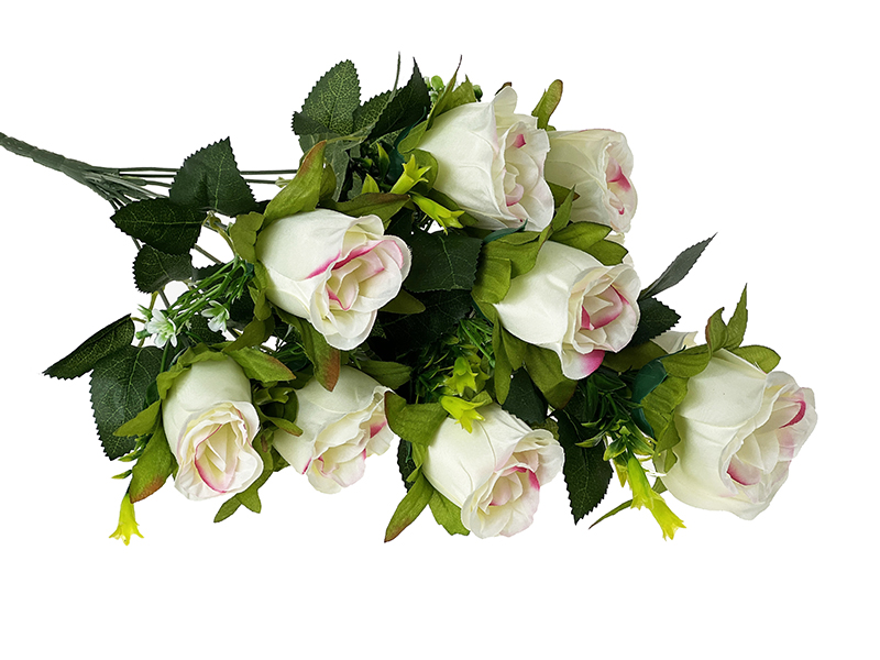 Bukiet BF-5 RÓŻA W PĄKU (Biały z różem)10 gałązek z dodatkiem! 56 cm