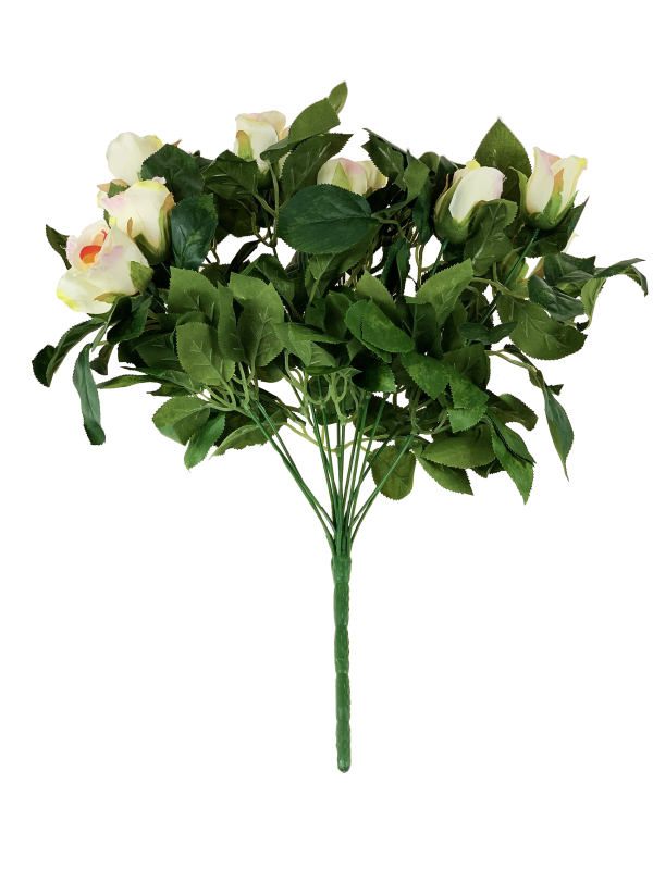 Bardzo duży bukiet składający się z 14 róż z dużą ilością liści. Bardzo dobre odwzorowanie żywych kwiatów, dobry jakościowo materiał. Cieniowane płatki, i efekt rosy robi wrażenie. Idealny gotowy bukiet do wazonu lub jako dodatek do tworzenia innych kompozycji kwiatowych. Bukiet dostępny w 6 wariantach kolorystycznych.