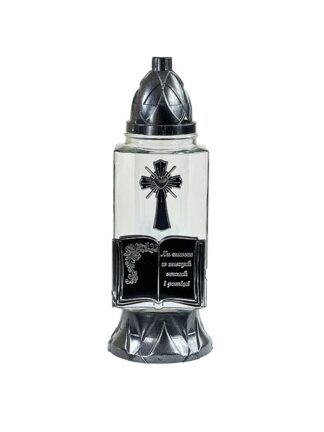 Znicz Solarny S804 Krzyż/Książka SREBRNY (24,5cm)