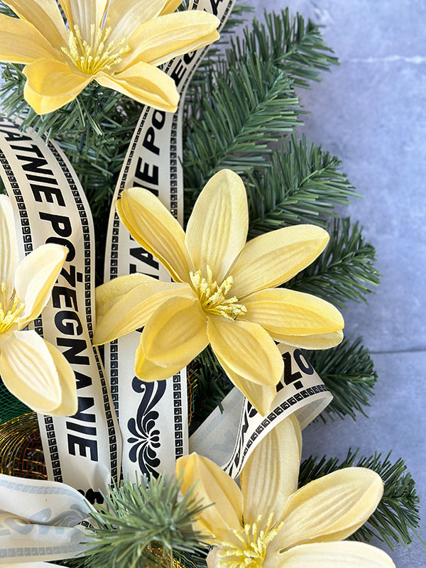 • kwiaty: dalia, imitacja świerkowych gałązek