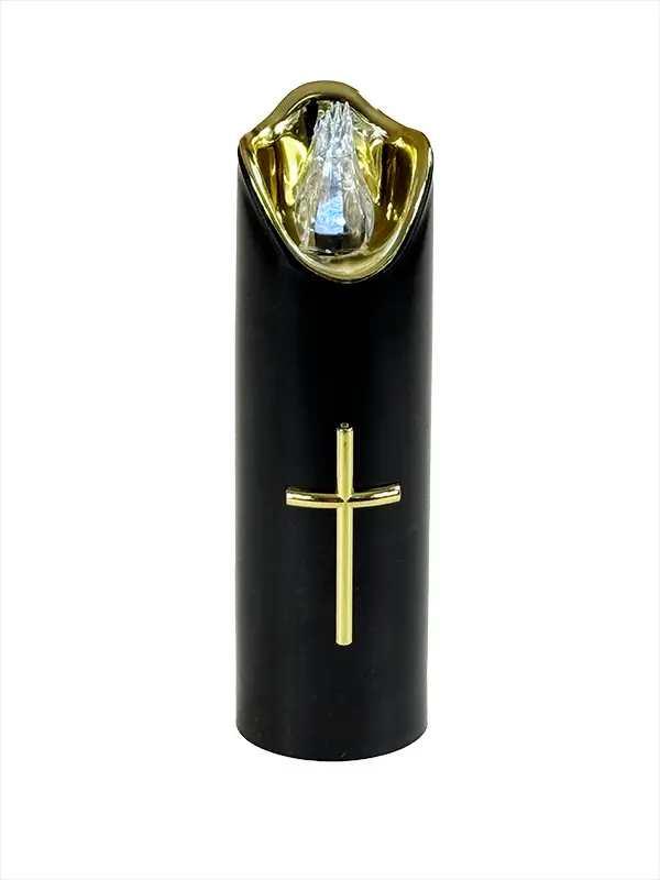 Świeca LED Złoty Krzyż 3/23/LUX-BAT/W Czarna + Biały chłodny płomień (17,5 cm)