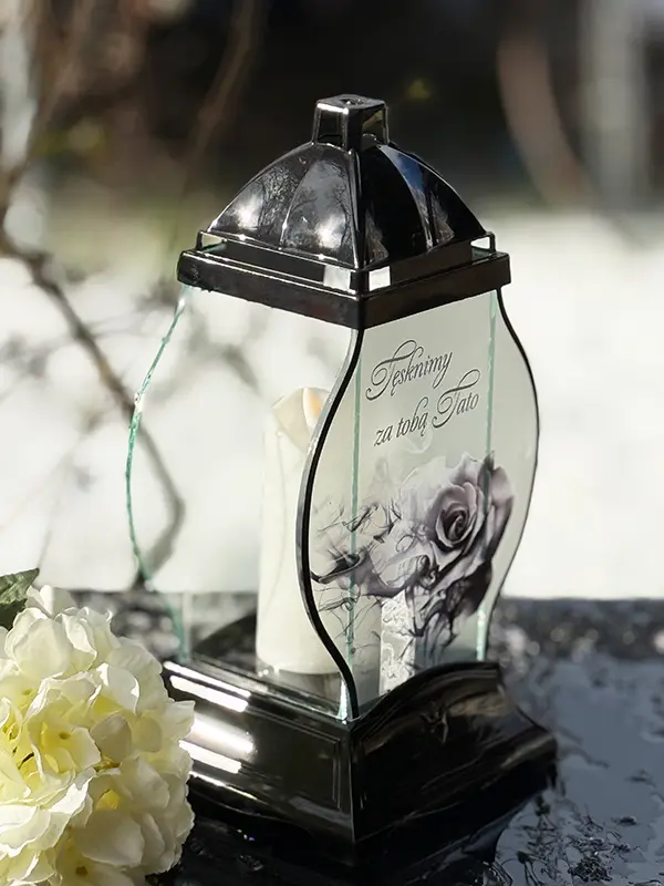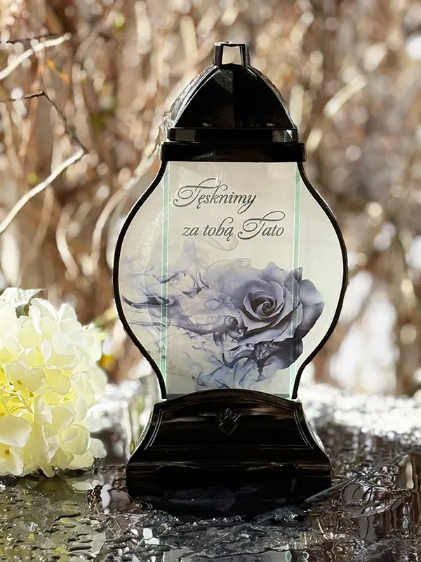 Znicz Kapliczka Q Czerń "Tęsknimy za Tobą Tato" (31 cm)