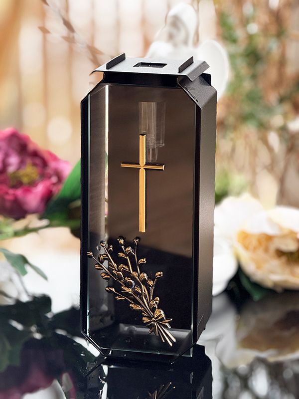 Znicz metalowy ze Świecą Gracja Duża Czarna, Złoty napis “Dzieli Nas tylko czas” (39 cm)