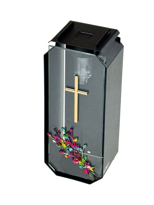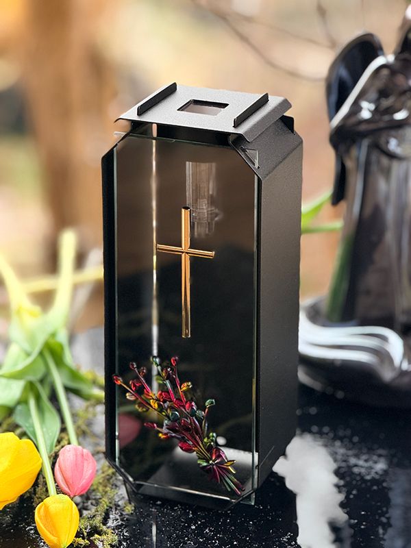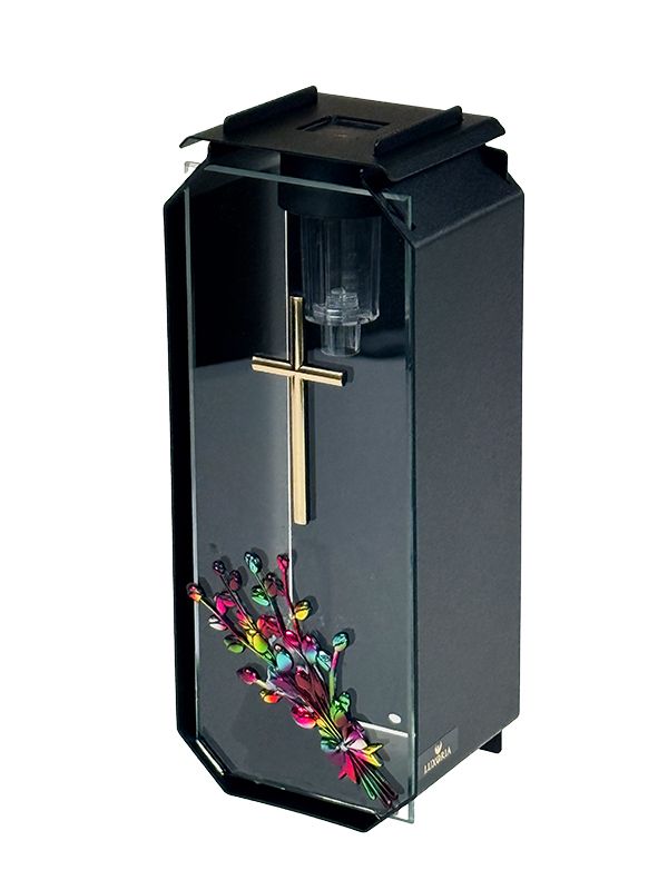 Znicz metalowy, kapliczka Premium LUXORIA KD Krzyż ZSZK3 ze ŚWIECĄ GRATIS Stal/Transparent