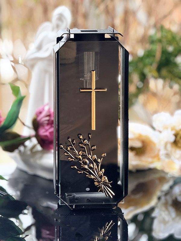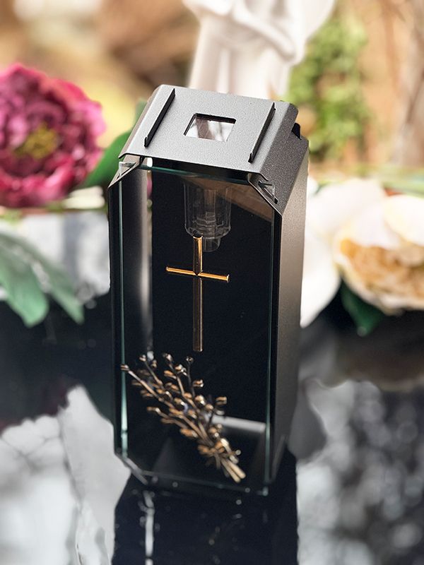 Znicz metalowy, kapliczka Premium Krzyż ZCK3P Czarny/Transparent