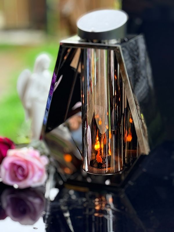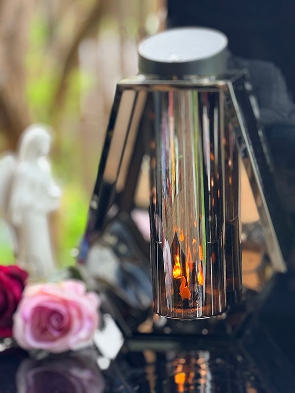 Ten lampion solarny to doskonałe połączenie tradycyjnej formy latarenki z ekologicznym rozwiązaniem zasilania energią słoneczną. Wewnątrz szklanego wazonu znajduje się wkład LED imitujący naturalne płomienie świec. Świeci całodobowo (dzień/noc). Automatyczny czujnik ruchu to Inteligentny system, który samoczynnie zwiększa intensywność i natężenie światła po wykryciu ruchu tym samym oszczędzając pobór energii. Znicz charakteryzuje się trwałą konstrukcją odporną na zmienne warunki atmosferyczne (deszcz, mróz, promienie UV), co gwarantuje jego długowieczność.