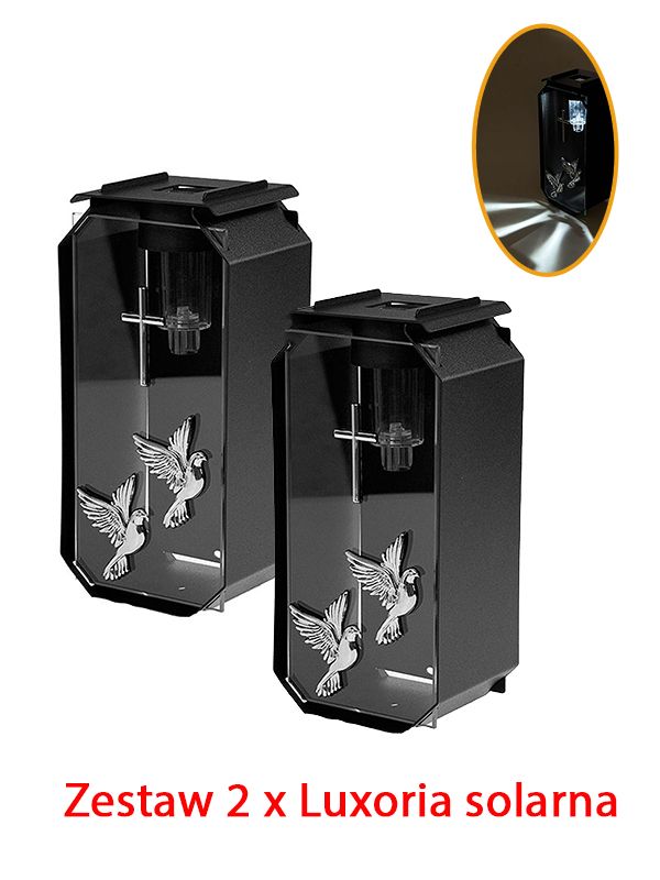 Zestaw 2 x kapliczka Solarna Metalowa LUXORIA T3 SREBRNE Gołębie Czarny Mat Transparent