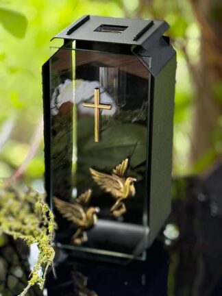 Kapliczka Solarna Metalowa LUXORIA T3 ZŁOTE Gołębie Czarny Mat Transparent (22 cm)