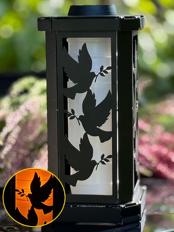 Znicz kapliczka metalowa solarna Aura z gołębiami "żywy płomień"