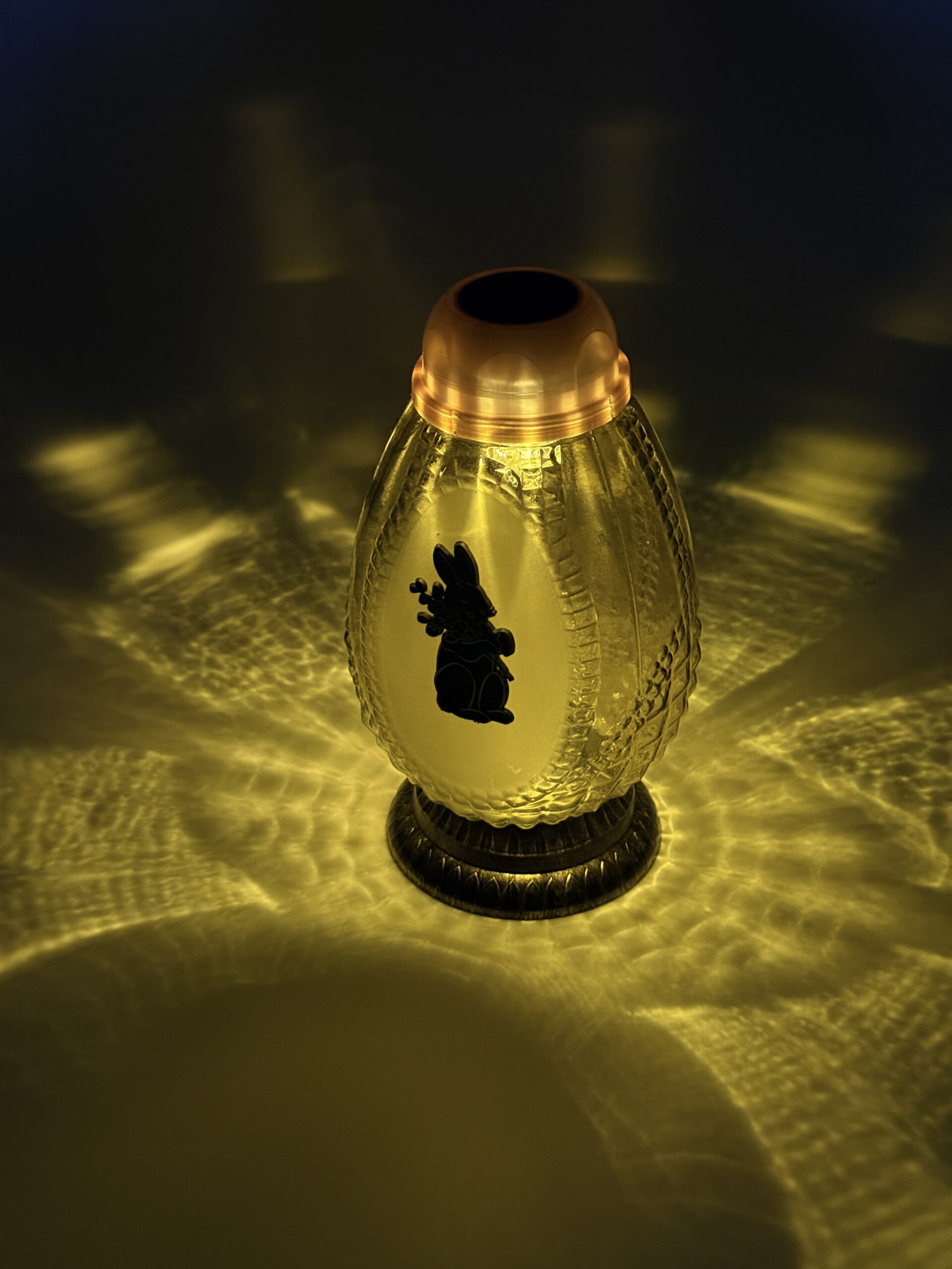 Znicz szklany solarny, wielkanocny o ciepłej barwie światła.