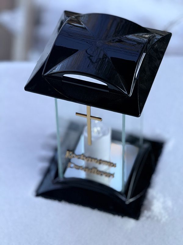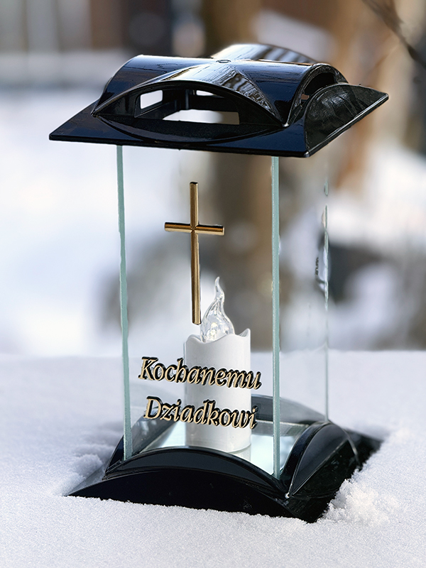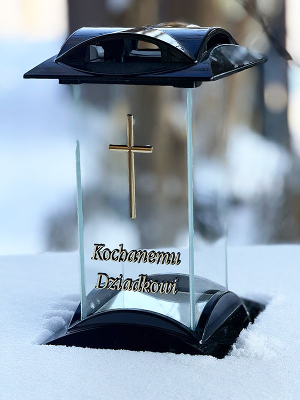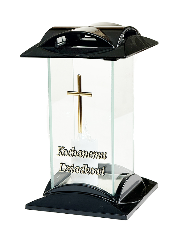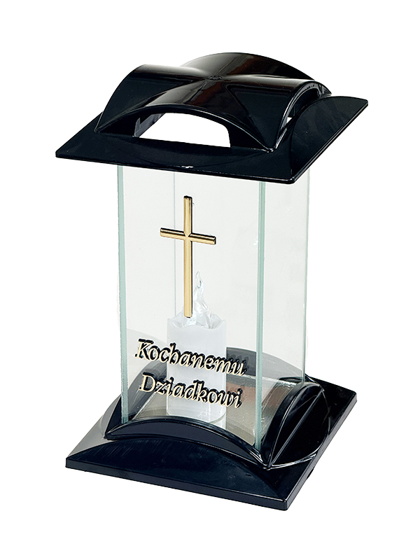 Znicz szklany na pomnik "Kochanemu Dziadkowi" 7/21/AKT Czarny + Wkład Led