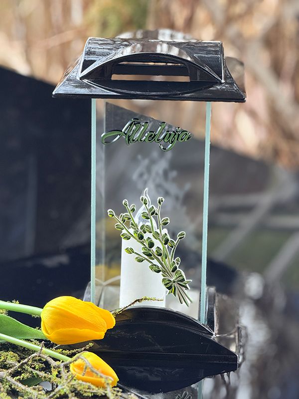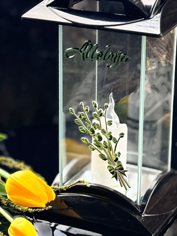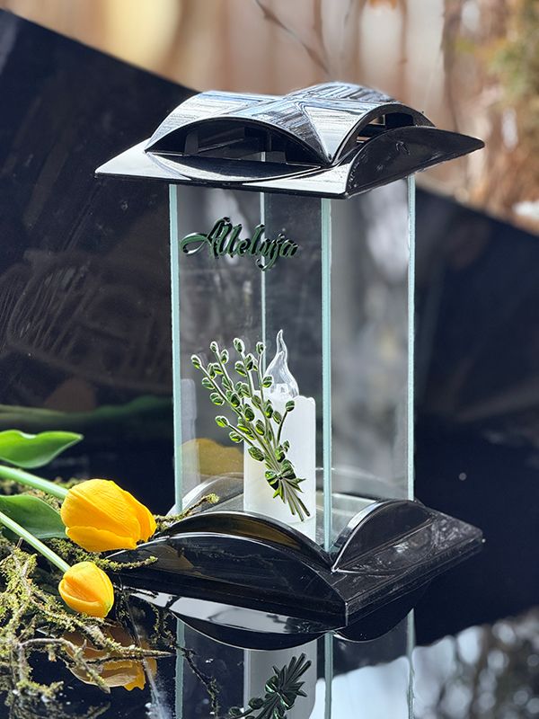 Znicz Wielkanocny na pomnik Bazie Alleluja 7/21/AKT Czarny + Wkład Led (Zielony)