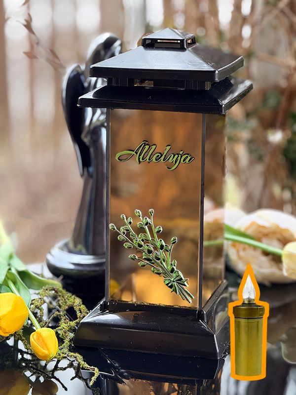 Znicz wielkanocny Zsz2 Miodowe szkło + Świeca Led MD4 #Zielone Alleluja/Bazie