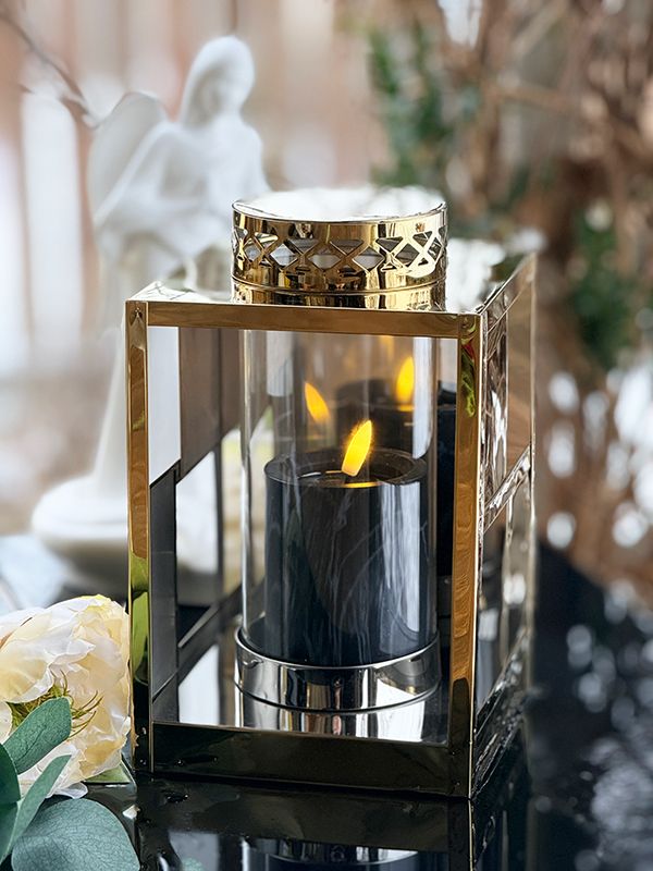 Sercem lampionu jest transparentna szklana tuba, która nie tylko chroni źródło światła, ale też pięknie je eksponuje. Abyś mógł cieszyć się blaskiem do zestawu dołączamy dopasowaną świecę LED. Na pomniku tworzy idealną kompozycję z większym lampionem LN2540.