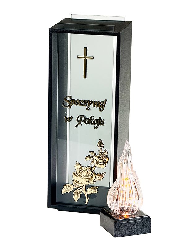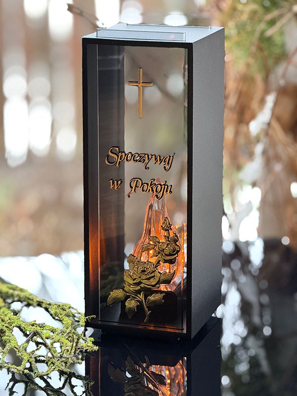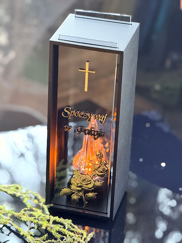 Unikatowy znicz metalowy Kolumna Premium "Spoczywaj w Pokoju"+ LED żywy płomień 2/24