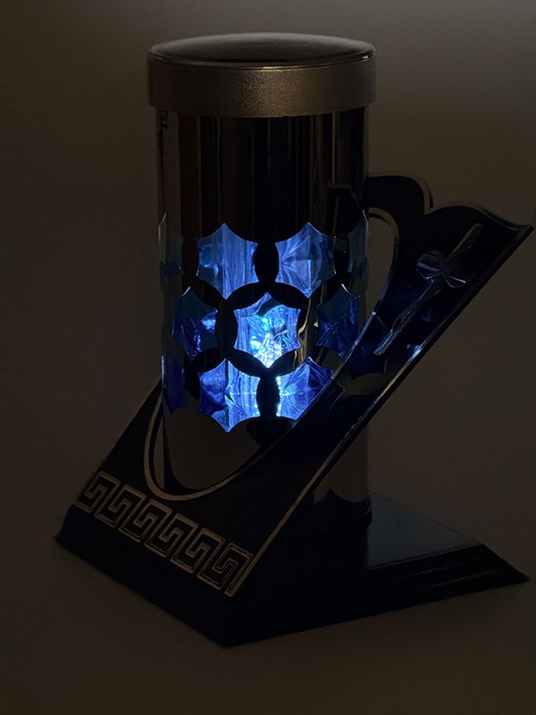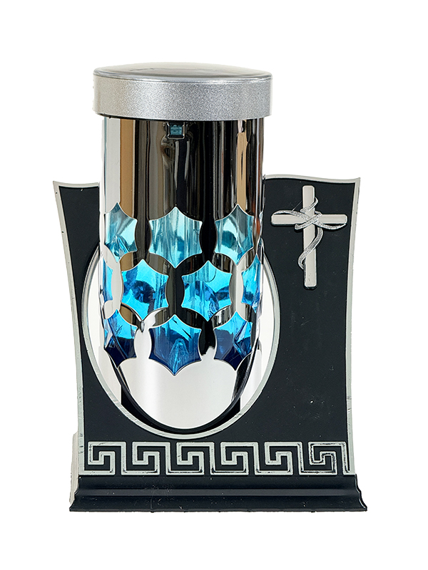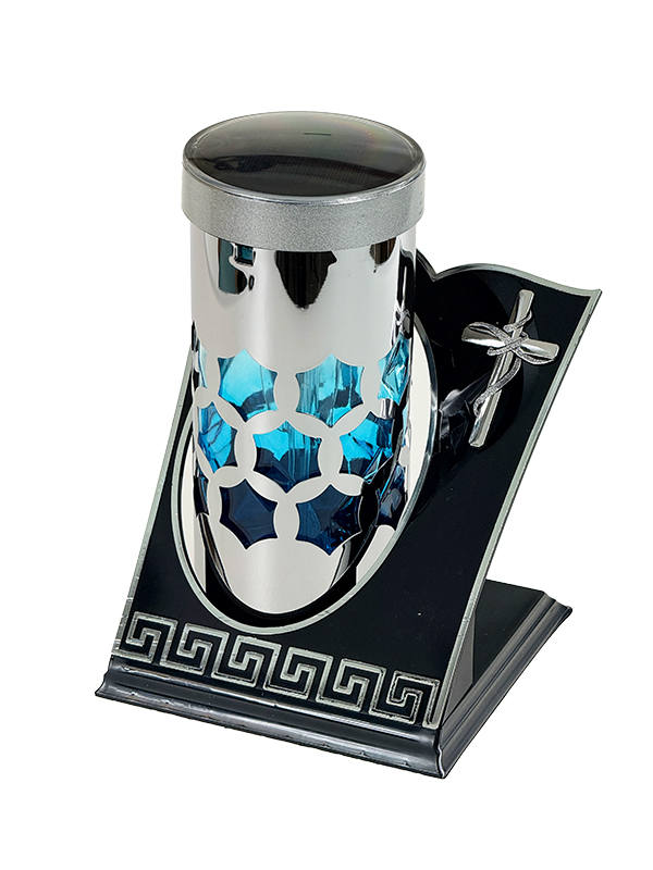 Znicz solarny całodobowy Meander Srebrny krzyż/niebieskie światło