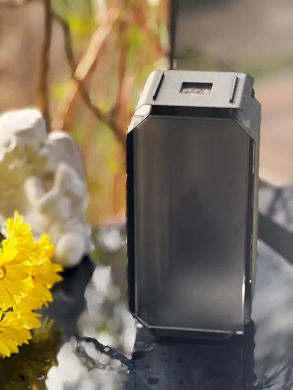 Materiał wysokiej jakości: Znicz/Kapliczka Solarna została wykonana ze stali nierdzewnej malowanej proszkowo na kolor czarny matowy o gramaturze 1 mm, co gwarantuje solidność i długowieczność użytkowania.