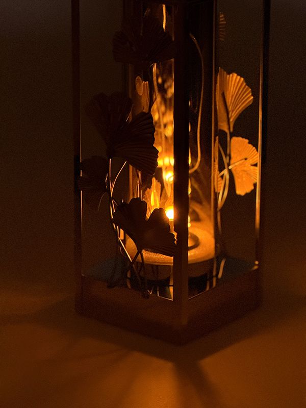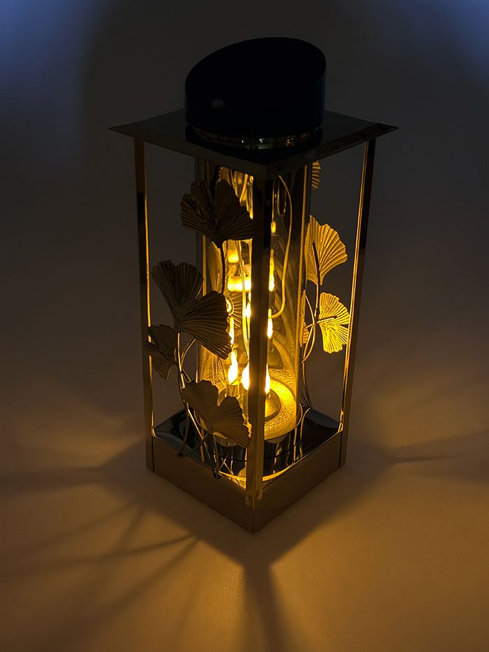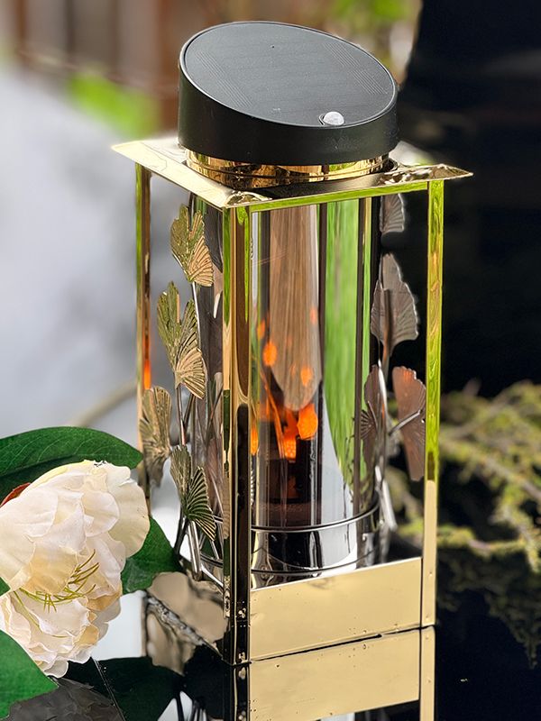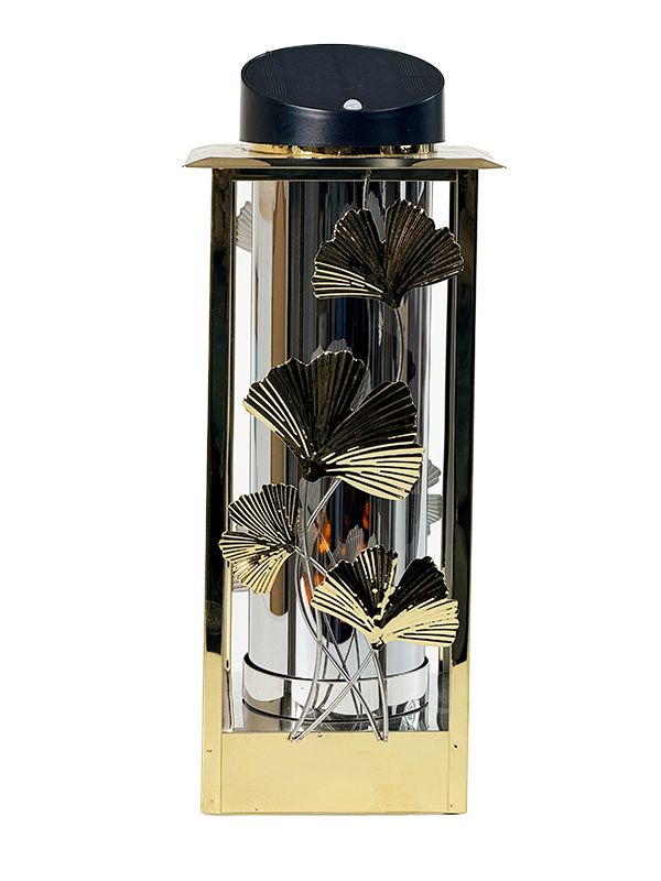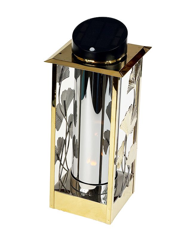 Lampion LNSL225Z Solarny metalowy Całodobowy Liść Miłorzębu *czujnik ruchu (Złoty)