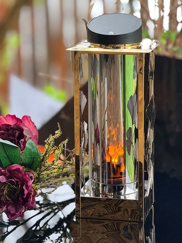 Lampion solarny z motywem liści miłorzębu to doskonałe połączenie tradycyjnej formy latarenki z ekologicznym rozwiązaniem zasilania energią słoneczną. Wewnątrz szklanego wazonu znajduje się wkład LED imitujący naturalne płomienie świec.  Świeci całodobowo (dzień i całą noc). Automatyczny czujnik ruchu to Inteligentny system, który samoczynnie zwiększa intensywność i natężenie światła po wykryciu ruchu tym samym  oszczędzając pobór energii. Znicz charakteryzuje się trwałą konstrukcją odporną na zmienne warunki atmosferyczne (deszcz, mróz, promienie UV), co gwarantuje jego długowieczność.