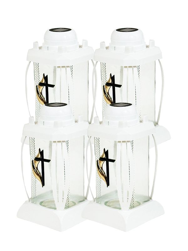 Zestaw Zniczy Solarnych Kapliczka Prima1 Biała Krzyż + Ogień złoty 4 sztuki (24cm)