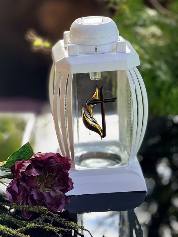 Znicz Solarny Prima1 Biała Krzyż + Ogień – Światło, które nigdy nie gaśnie…