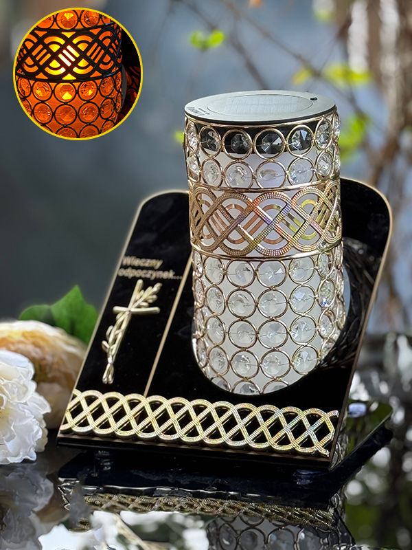 Znicz solarny Koło Vip to połączenie klasy i nowoczesnych rozwiązań, stworzone z myślą o trwałej i pięknej pamięci o bliskich. Wykonany z wysokiej jakości szkła, elementów metalowych oraz akrylowych kryształów, zachwyca elegancją i wyjątkowym blaskiem. Satynowa szklana tuba subtelnie rozprasza światło, tworząc nastrojowy efekt widoczny zarówno po zmroku, jak i w ciągu dnia. Dzięki wydajnemu panelowi solarnemu i długiej żywotności, znicz staje się symbolem pamięci, który nie gaśnie.