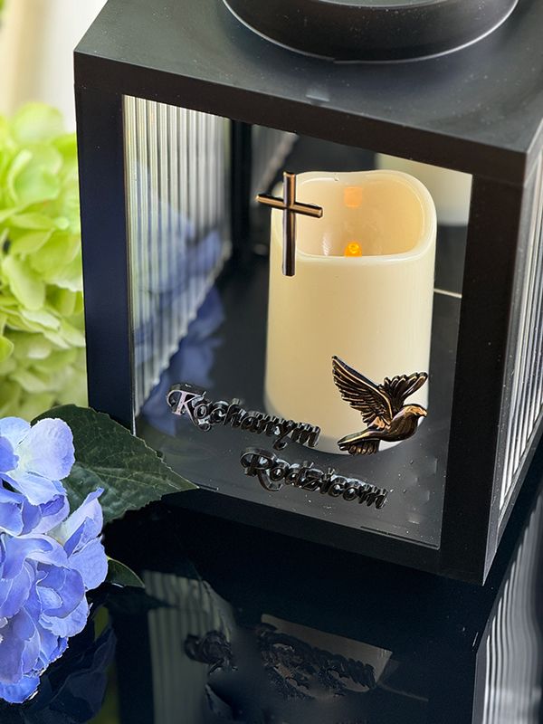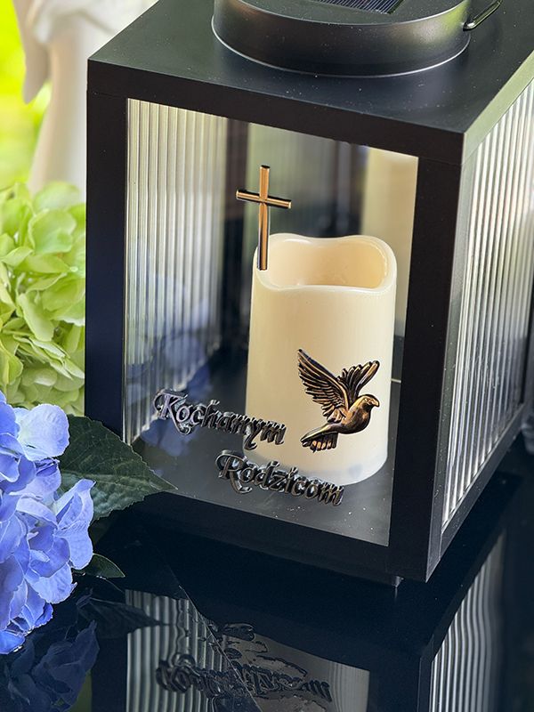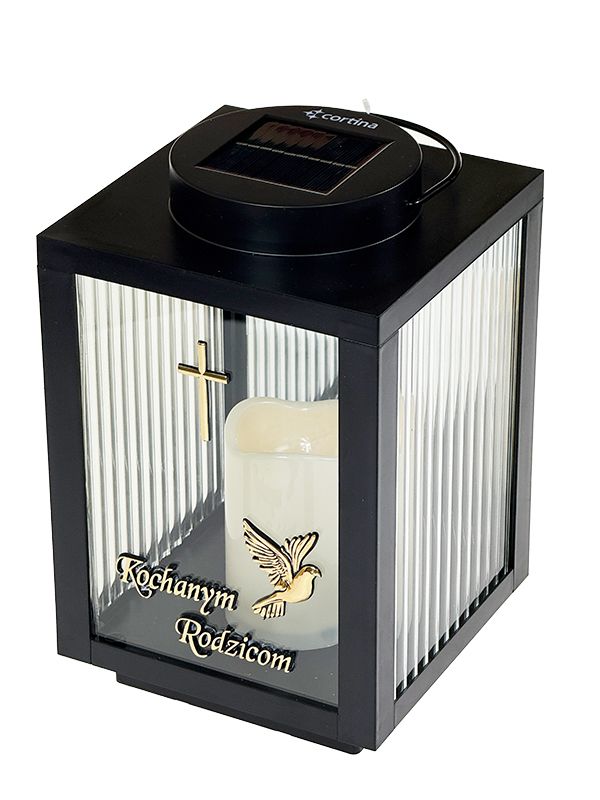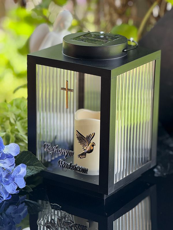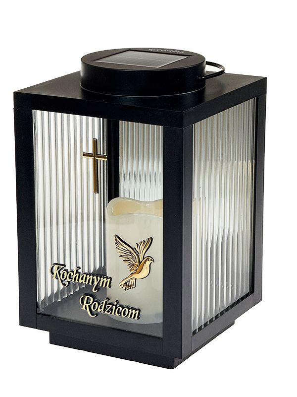 Znicz solarny, Nowoczesny Lampion Led Całodobowy Złoty napis "Kochanym Rodzicom"