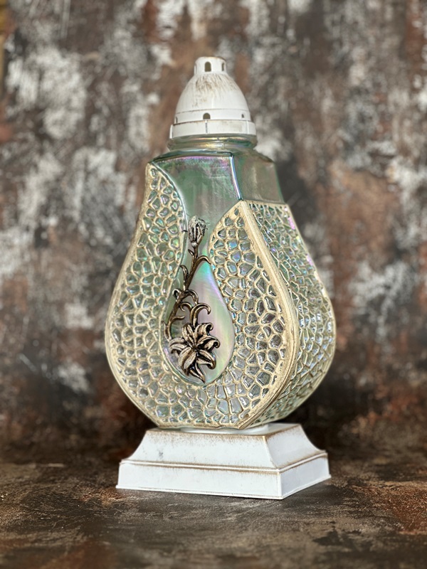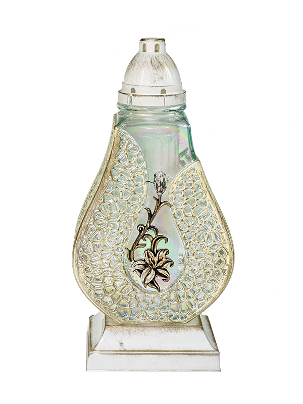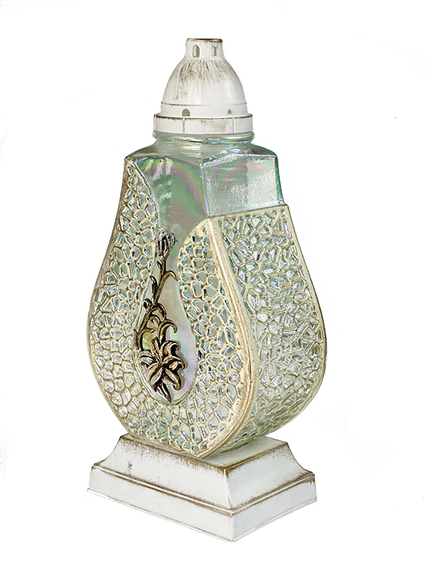 Artystyczny znicz szklany na wkład Rosa biało/złoty