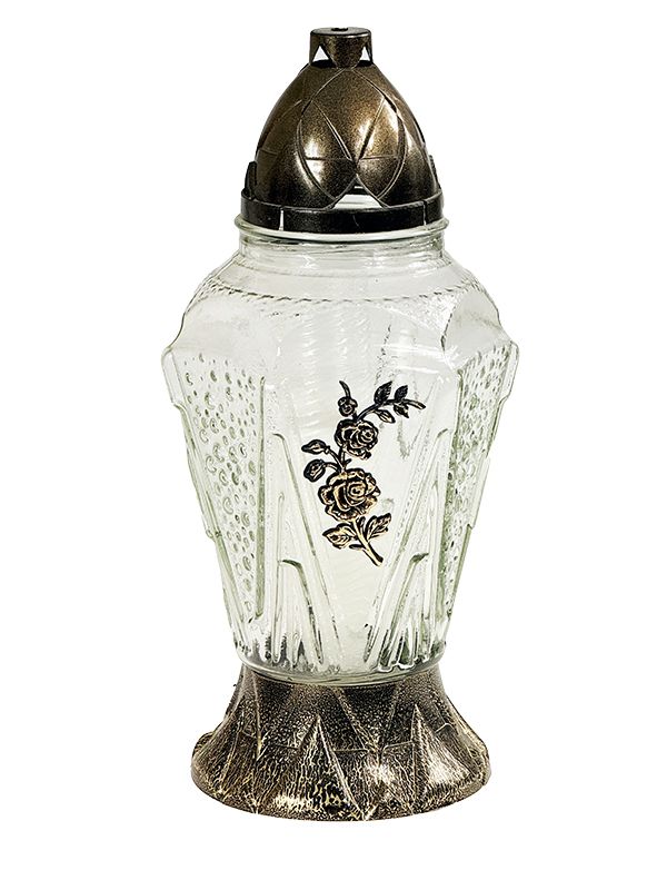 Duży znicz szklany S591 Kryształ z różą Ostatnie sztuki!